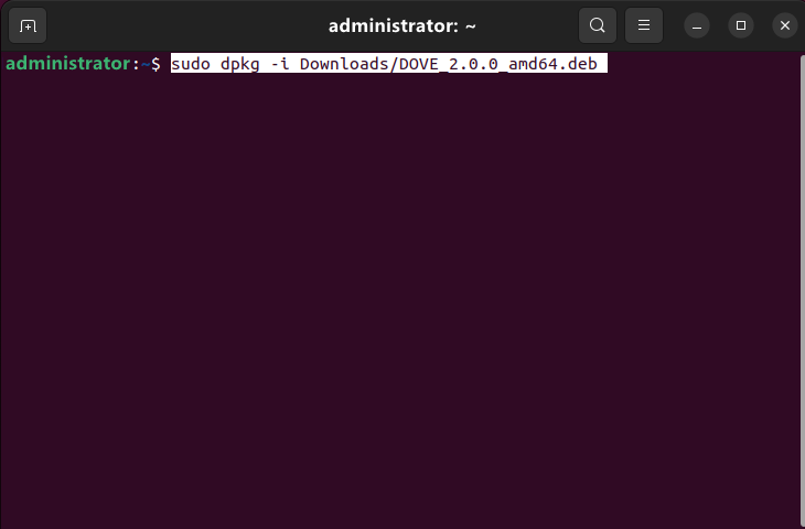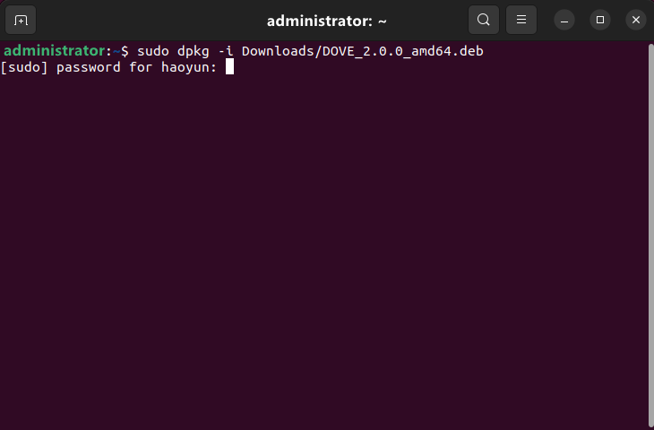 第2步:复制粘贴输入命令:sudo dpkg -i Downloads/DOVE_2.0.7_amd64.deb