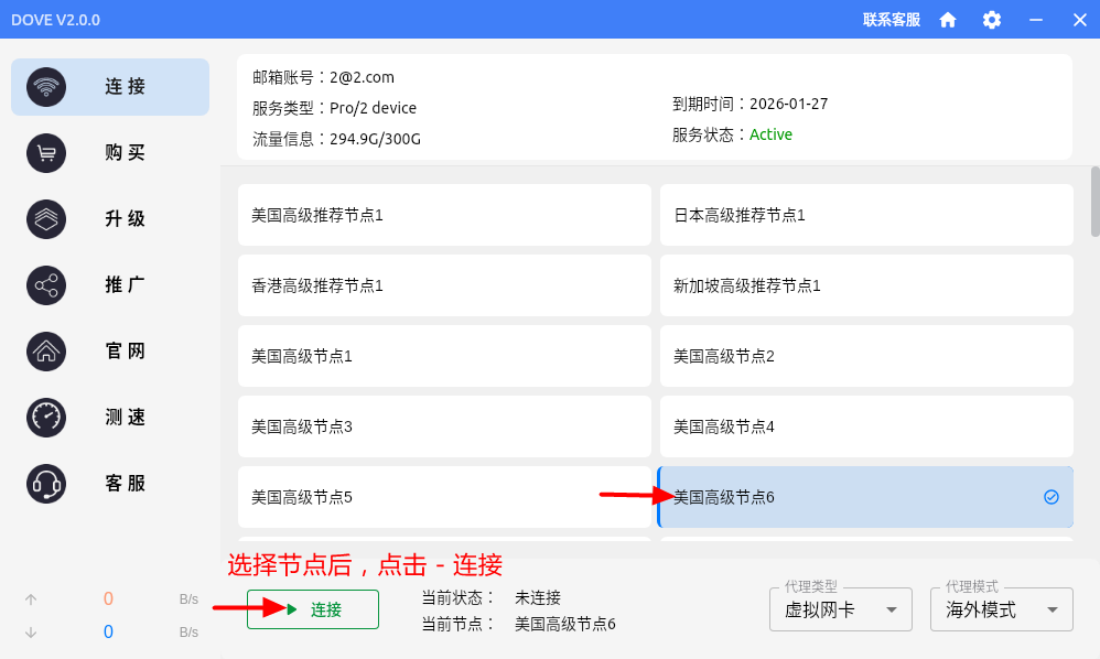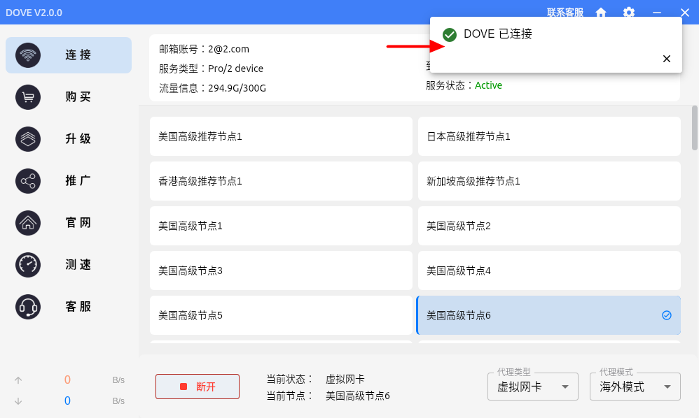 第6步:运行DOVE后,输入:您已购买服务的邮箱账号和密码,点击 - 登录(如图)